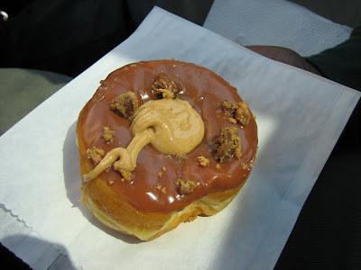 All done! We did 1/2 with tomato sauce, olives, red peppers, mushrooms and spinach, 1/4 with pesto, mozzarella and fresh tomatoes and 1/4 with red pepper puree, broccoli and spicy turkey sausage.